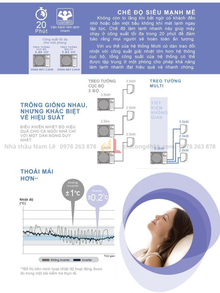 • Loại phòng: Một dàn nóng 2.0Hp kết hợp tối đa với 3 dàn lạnh