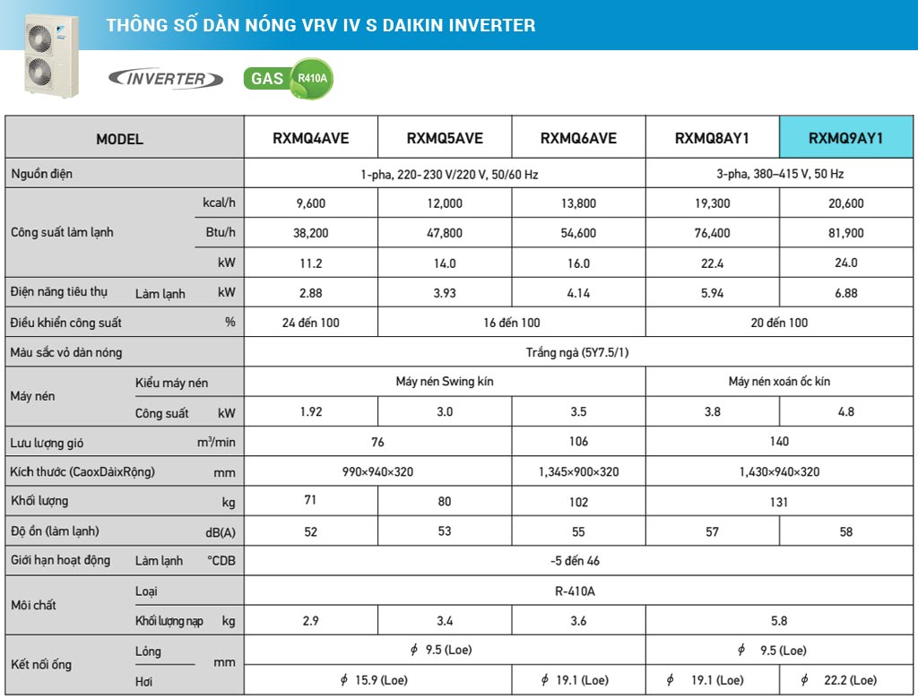 Dàn nóng VRV IV S Daikin Inverter 9.0 HP (9 Ngựa) RXMQ9AY1