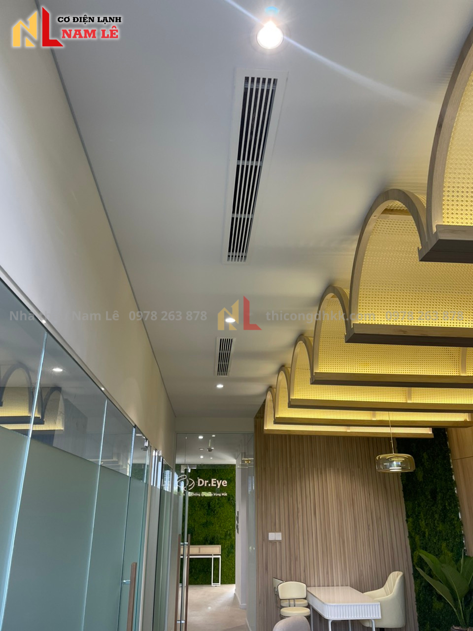 Ngoài ra để có được một không gian rộng rãi, thoải mái, hiện đại và trên hết là về mặt thẩm mỹ. Thi công máy lạnh Nam Lê đã đề xuất và xây dựng hệ thống điều hòa âm trần cho Viện thẩm mỹ Dr. EYE.