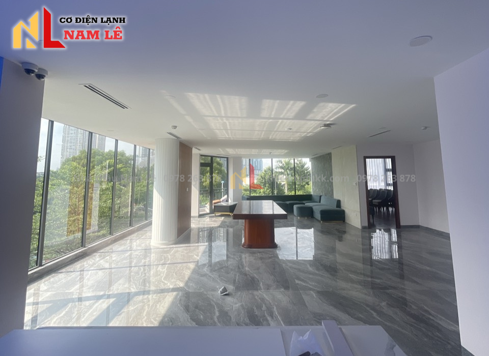 Hệ thống điều hòa mà công trình ưu tiên lựa chọn là hệ thống điều hòa Multi kết hợp cùng hệ thống máy lạnh cục bộ. Dàn lạnh sử dụng trong văn phòng là dàn lạnh loại âm trần nối ống gió, đảm bảo tiết kiệm không gian và tính thẩm mỹ, hiện đại.
