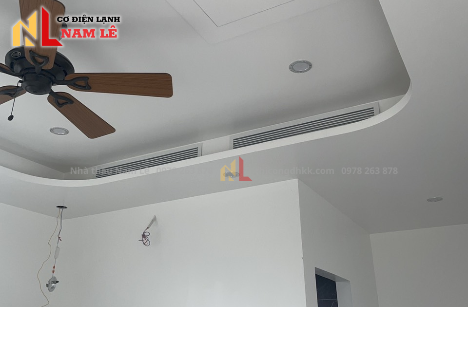 Hệ thống điều hòa không khí mà căn Villa lựa chọn là hệ thống điều hòa không khí & hệ thống vam thu hồi nhiệt. Với dàn lạnh là loại giấu trần nối ống gió. Đây là sự lựa chọn hoàn hảo, phù hợp với kết cấu Villa, đảm bảo đủ yêu cầu làm lạnh cho từng khu vực. Đặc biệt là mang lại sự hiện đại, sang trọng, thẩm mỹ cho không gian.